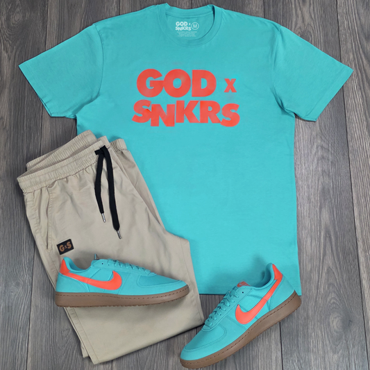 Hit me when this restocksGOD x SNKRS OG Logo Tee & Sneaker Combo - Living Water