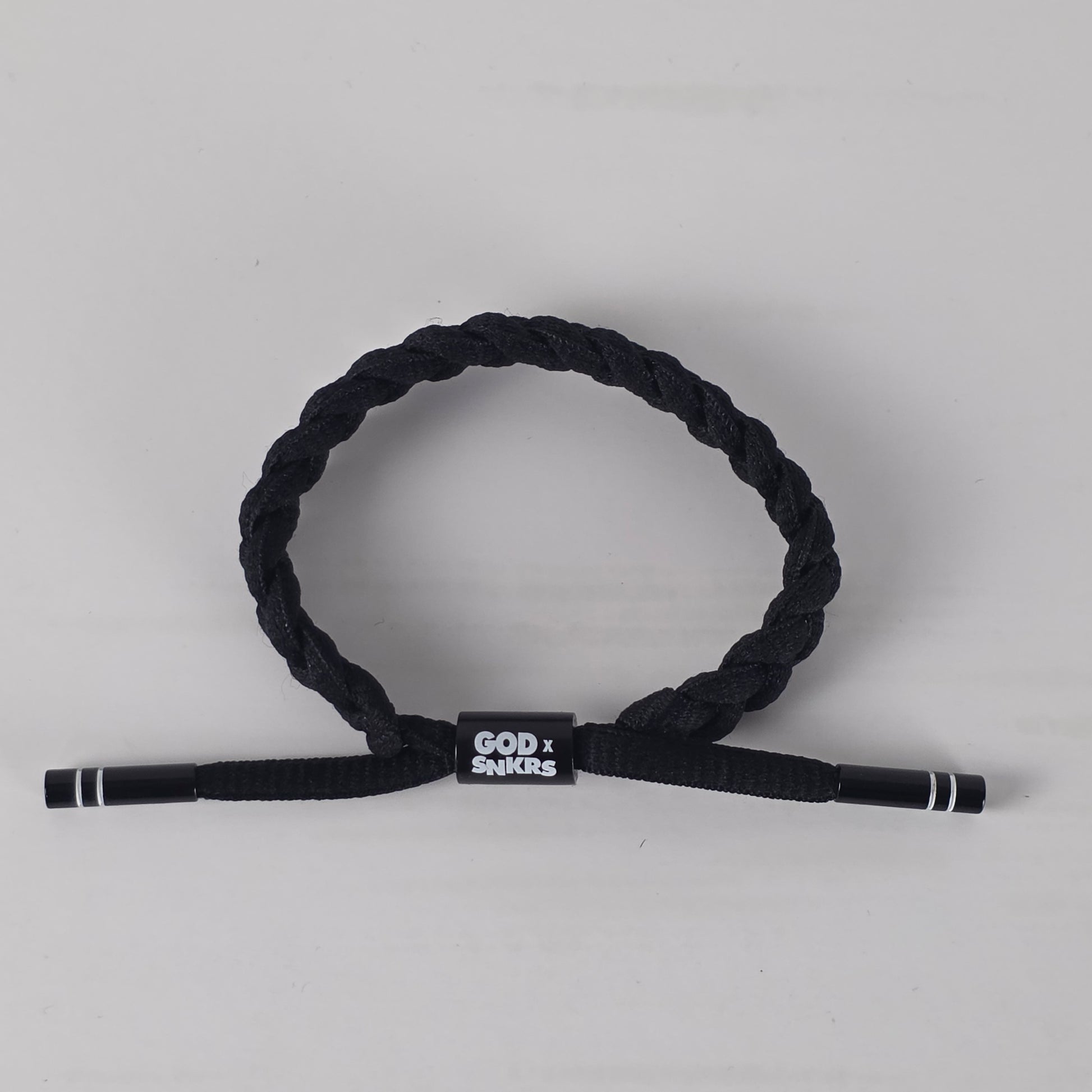 Built with a premium braided lace design and finished with Black metal aglets, this wrist band fuses sneaker culture with Biblical truth. The custom GOD x SNKRS clasp anchors the piece, symbolizing identity, strength, and the God who formed you in His image.